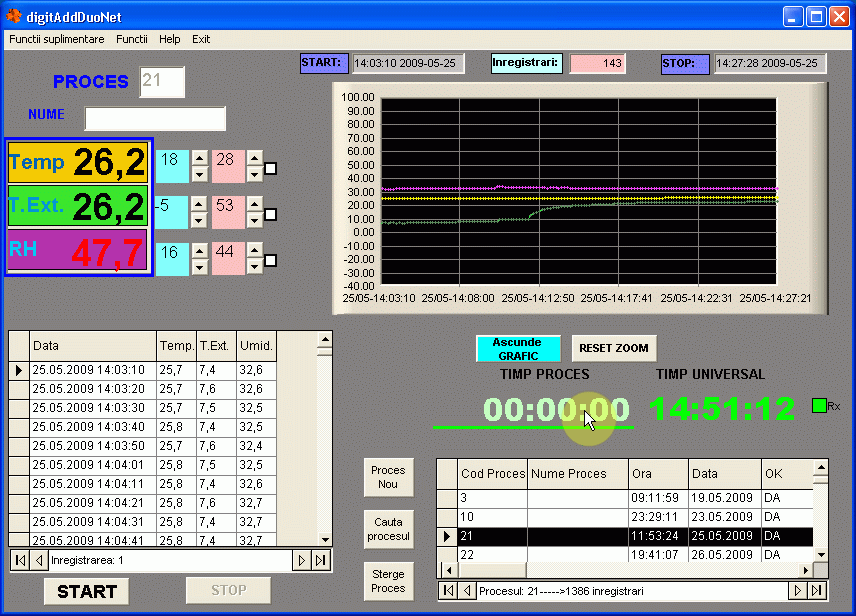 digitAdd DUO Net este o aplicatie ce are functia de monitorizare a mesajelor trimise de un inregistrator de temperatura si umiditate din familia AZ-Instrument care apoi trec prin convertorul serial in reteaua Ethernet. Aplicatia are urmatoarele facilitati: